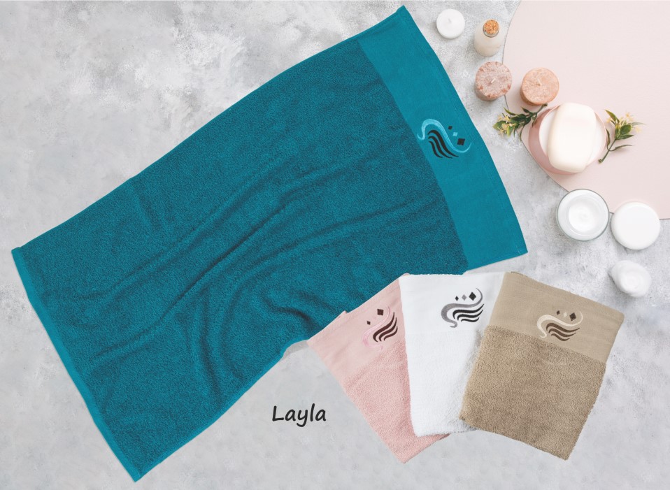 Σετ πετσέτα 3τμχ με κέντημα στη φάσα Σx. Layla σε κουτί 430 gsm 100% cotton